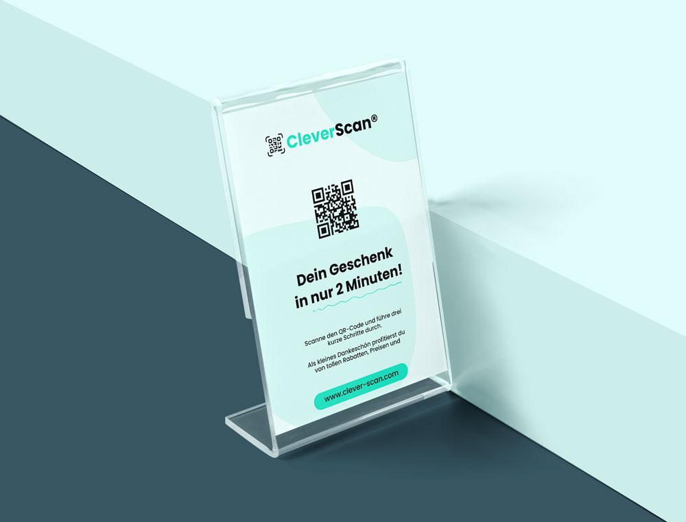 Dieser QR-Code befindet sich auf deinem persönlichen Kundenaufsteller, welcher sich in deiner CleverBox befindet.